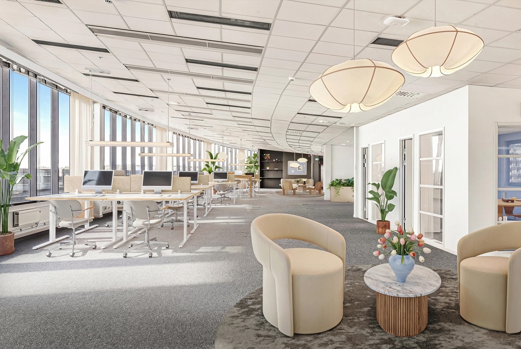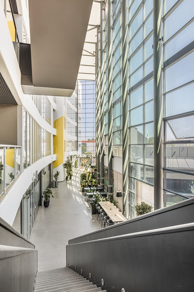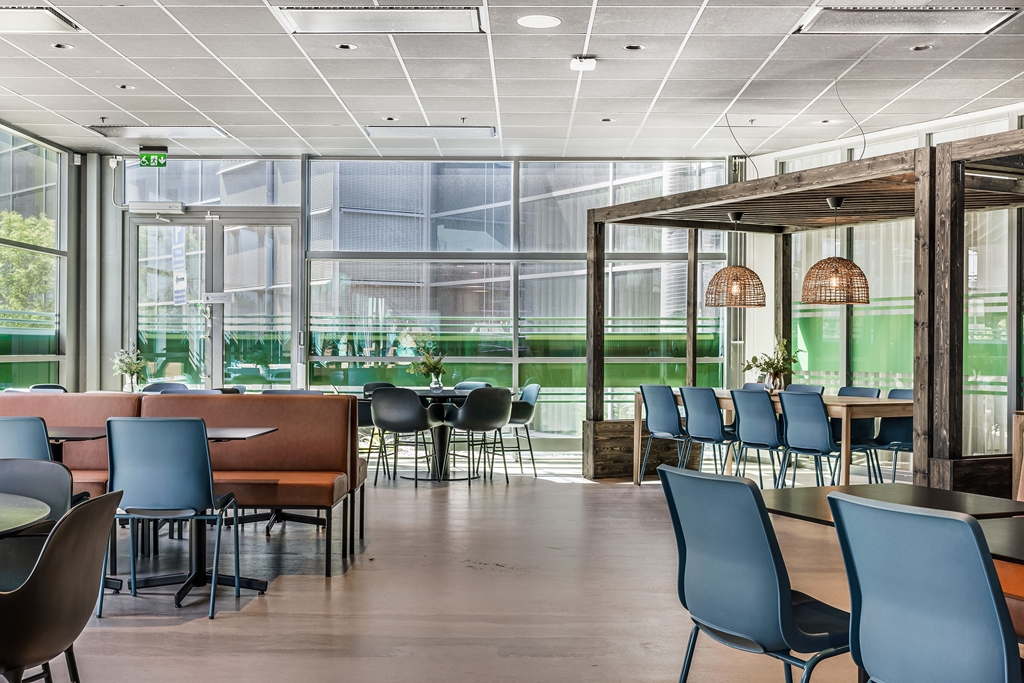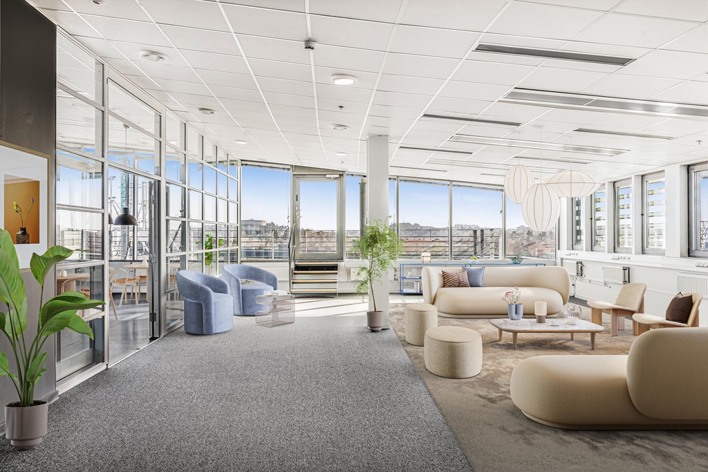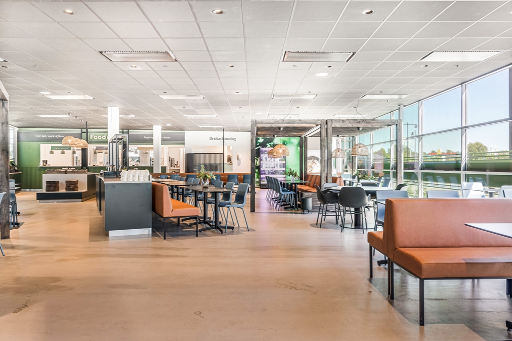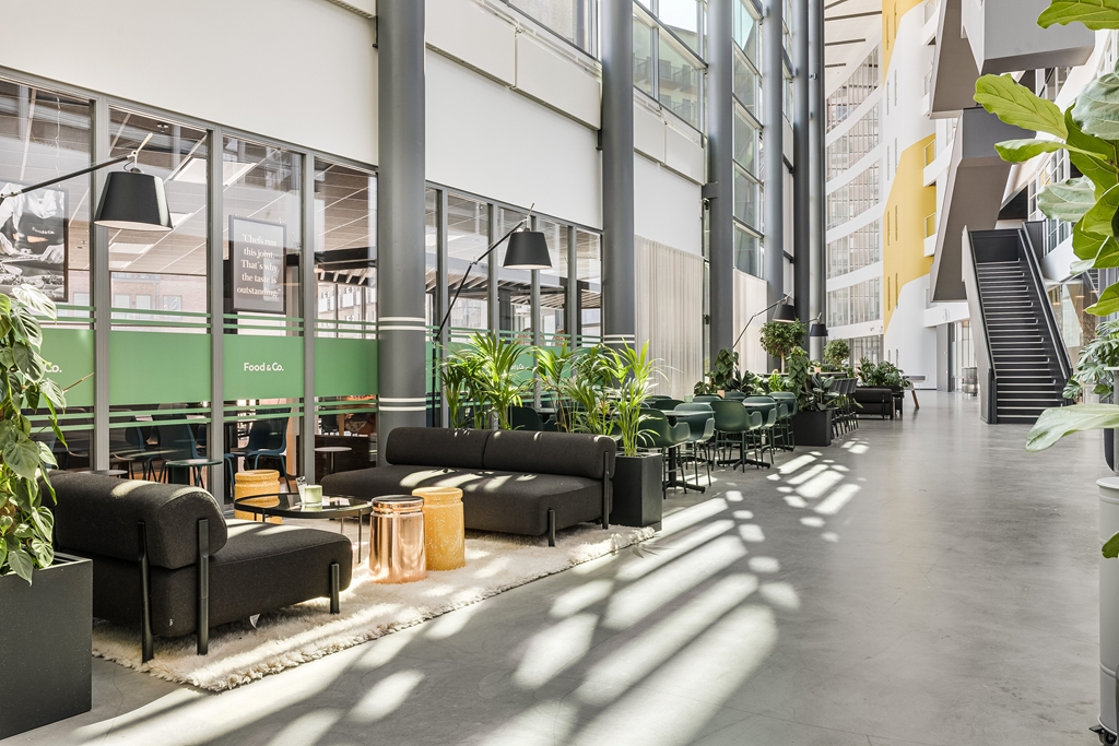 Reception med tillhörande tjänster, gym, cykelparkering